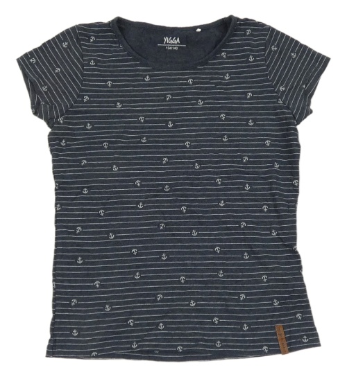 Tmavomodro-bílé pruhované melírované tričko s kotvami YIGGA
