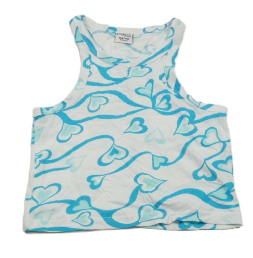 Bílo-světlemodrý crop top se srdíčky Page one young