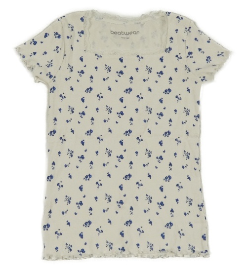Smetanové žebrované tričko s kytičkami a krajkou beatwear