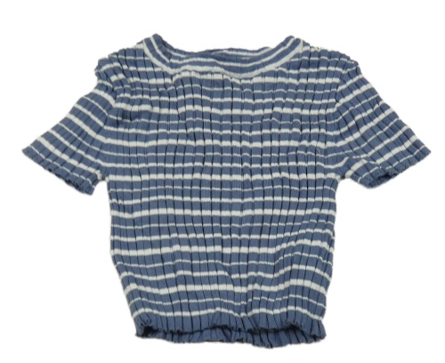 Tmavomodro-bílé pruhované žebrované úpletové crop tričko H&M