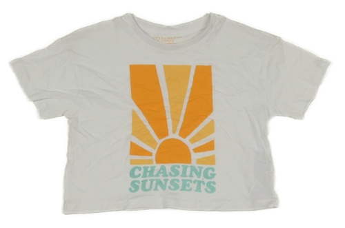 Bílé crop tričko se sluncem a nápisy PRIMARK