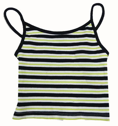 Černo-bílo-limetkový pruhovaný žebrovaný crop top