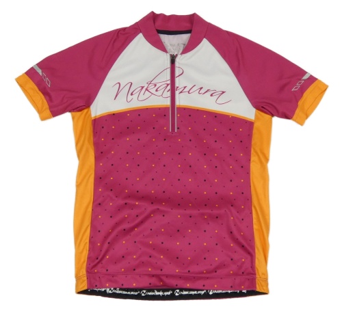 Fuchsiovo-bílý cyklistický dres s puntíky Nakamura