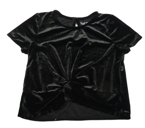 Černé třpytivé sametové crop tričko s uzlem Nutmeg