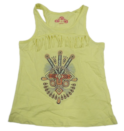 Žlutý top s potiskem a třásněmi Alive