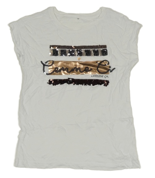 Bílé tričko s nápisem a flitry