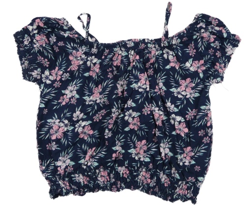 Tmavomodré květované crop tričko s listy Y.F.K.