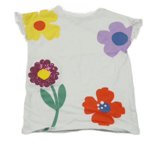 Bílé tričko s kytičkami a flitry a volánky Tu