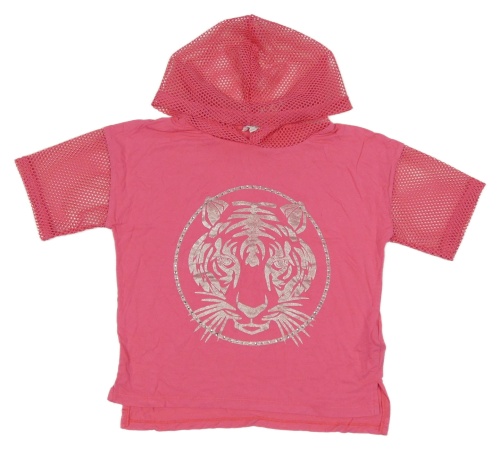 Růžové crop tričko s tygrem a síťovanou kapucí Bluezoo