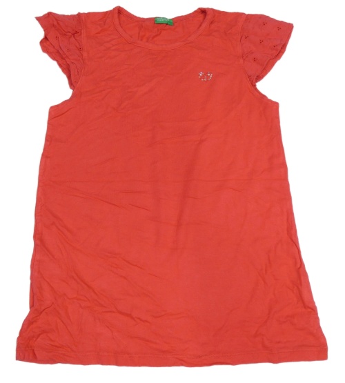 Jahodové tričko s madeirovými rukávy a kamínky Benetton
