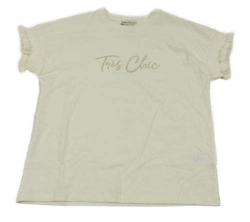 Smetanové tričko s nápisem a volánky C&A