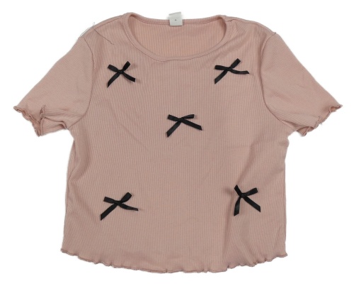 Světlerůžové žebrované crop tričko s mašličkami shein