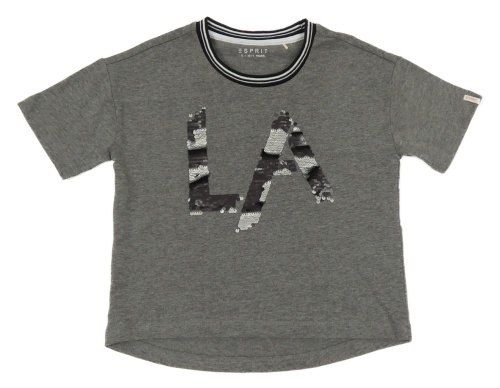Šedé melírované crop tričko s nápisem z flitrů Esprit