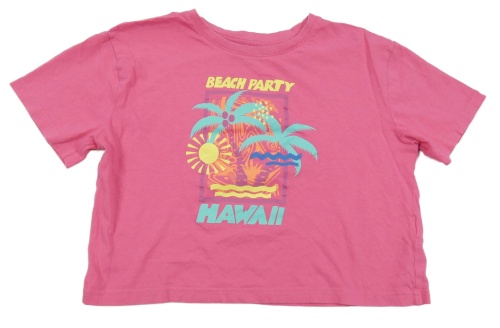 Tmavorůžové crop tričko s palmami a nápisem Primark