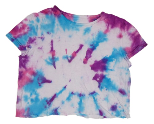 Světlerůžovo-fialovo-modré batikované crop tričko
