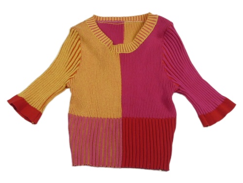 Fuchsiovo-žluto-červené žebrované svetrové crop tričko