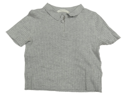 Šedé melírované žebrované pletené polo crop tričko H&M