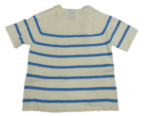Smetanovo-modré pruhované žebrované úpletové crop tričko ZARA