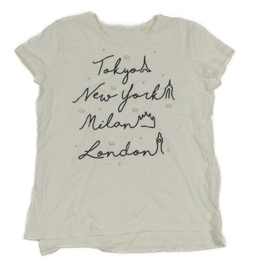 Bílé tričko s nápisy a perlami a pecičkami C&A