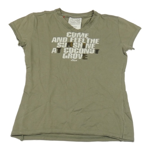 Khaki tričko s nápisem s flitry S. Oliver