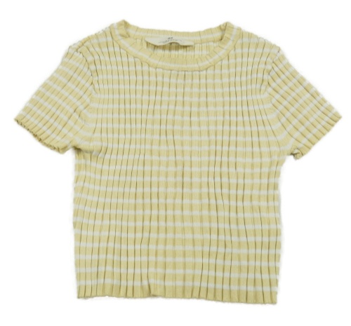 Žluto-bílé pruhované žebrované pletené crop tričko H&M