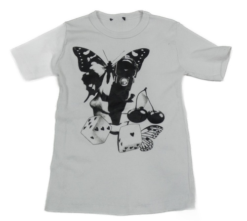 Bílé žebrované crop tričko s motýlem a kostkami