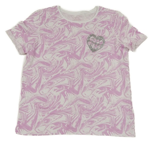 Bílo-růžové vzorované tričko se srdcem s nápisem Primark