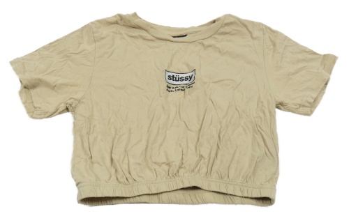 Béžové crop tričko s nápisem