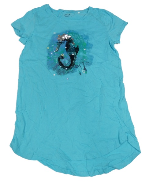 Azurová tunika s mořským koníkem z překlápěcích flitrů YIGGA