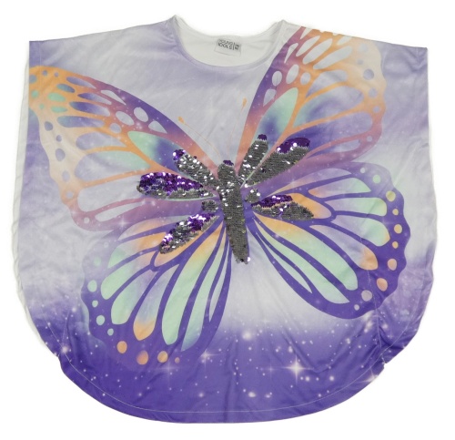Lila-fialové tričkové pončo s motýlkem a flitry