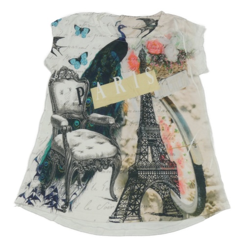 Bílo-barevné tričko s nápisy a motýly