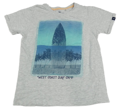Světlešedé melírované tričko se surfem a palmami a nápisem LEMON BERET