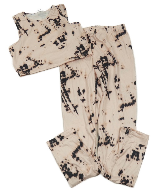 2 set - růžovo-černý batikovaný crop top + růžovo-černé batikované legíny