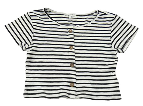 Bílo-černé pruhované žebrované crop tričko s knoflíky Page One Young