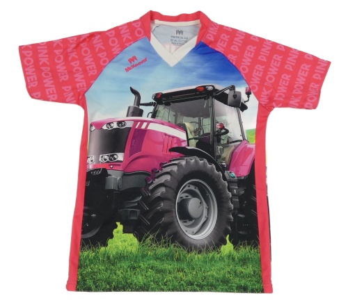Růžovo-modré tričko s traktorem