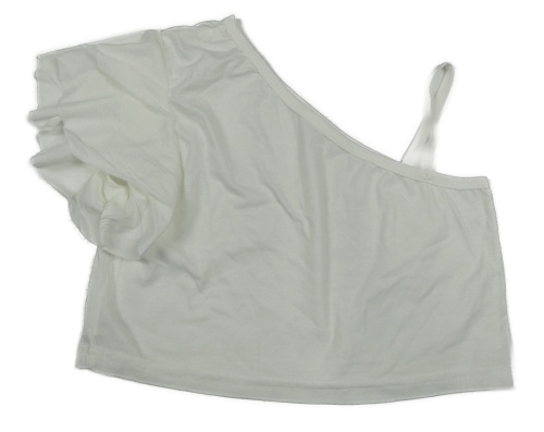 Bílé crop tričko s volánkem a odhaleným ramenem