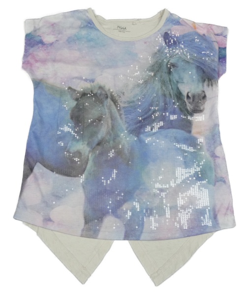 Smetanovo-modro-šedé tričko s koníky a flitry Yigga