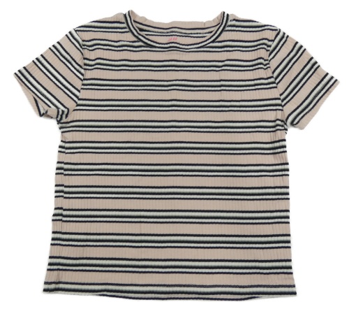 Růžovo-černo-bílé pruhované žebrované crop tričko H&M