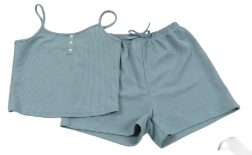 2set - Modrošedý žebrovaný crop s knoflíky + kraťasy Shein