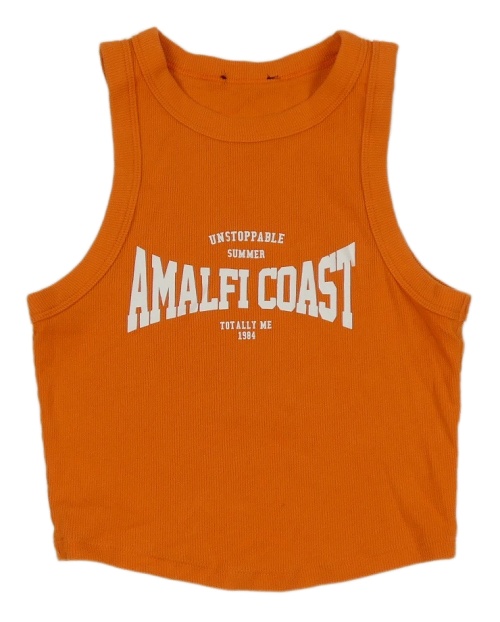 Oranžový žebrovaný crop top s nápisem