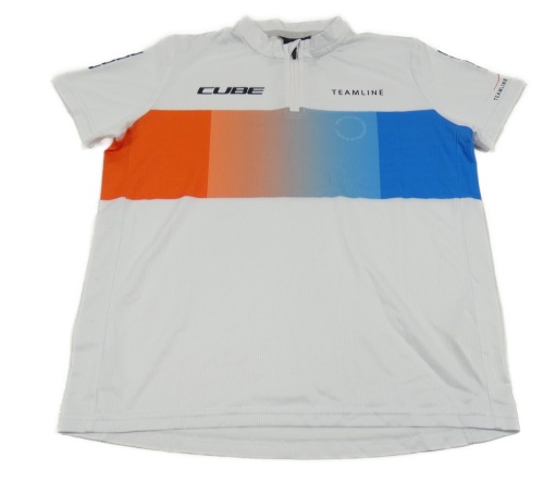 Bílo-červeno-modré sportovní cyklistické tričko s logem CUBE