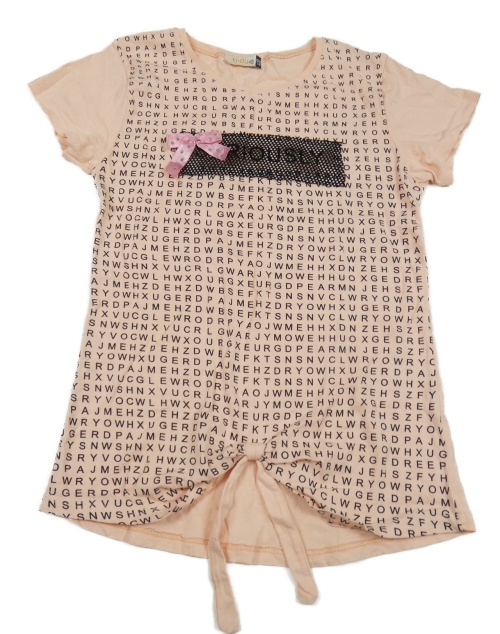 Světlerůžové tričko s písmeny a síťkou a mašlí