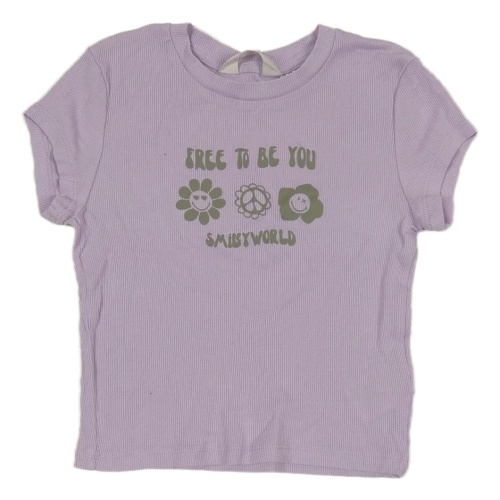 Lila žebrované crop tričko s nápisy a květy H&M