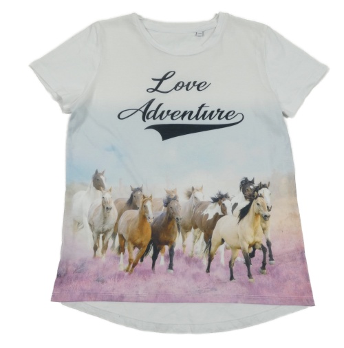 Bílo-světlemodro-růžové tričko s koníky a nápisy C&A