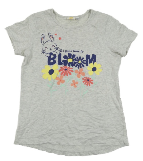 Světlešedé melírované tričko s kytičkami a zajíčkem a nápisy Kids