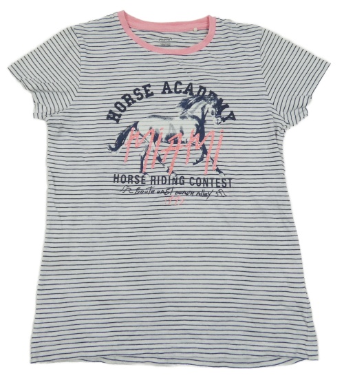 Tmavomodro-bílé pruhované tričko s potiskem Yigga