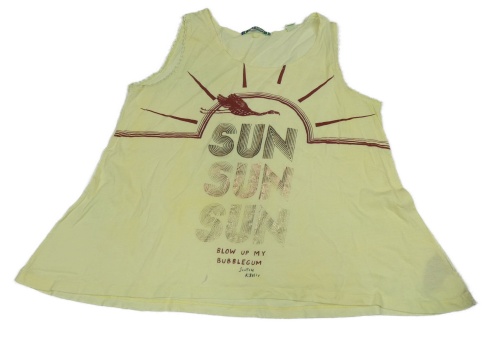 Světležlutý top s ptáčkem a nápisy