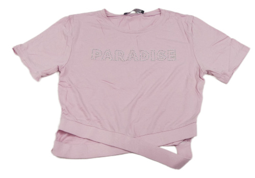 Světlerůžové crop tričko s nápisem z kamínků Select