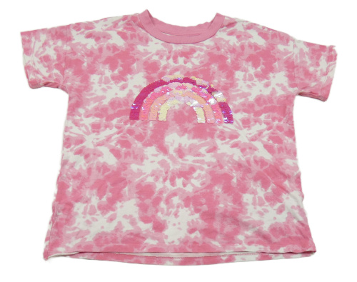 Růžovo-bílé batikované tričko s duhou z flitrů Nutmeg