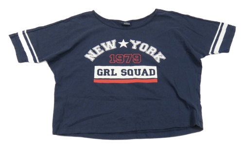 Tmavomodré crop tričko s nápisem Arizona
